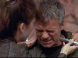 | ライガーの部下は、ティルクが倒した兵士の死体を見つける。そして、他にメンバーがいるな?と問いただす。それに対し、ダニエルは、知らないと言うが。ライガーはカーターとオニールを撃つ。さらに、埋まっていたDHDを発見し、問いただすがそれには応じない。断固として否定するダニエルであった。 再び視力回復装置を繰り返すティルクは、少しずつ光が見え始めた。そして、一緒にナイアンに助けて欲しいと言う。ナイアンは、協力することを約束し、兵舎から運ぶためにやってきたポッドを奪い取り、兵舎に向かう。 |