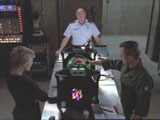 | ハモンドは、ブリーフィングルームにSG1を集め、6時間に3回徹底的に基地内を捜索したが、生物の痕跡は発見されなかった。ジョナスを疑うSG1メンバー。固体をすり抜けていく前例はあっただろうとジョナスは言うが、ビデオにも何も写っていない。 物的証拠が出ないため、このまま警戒態勢を続けるわけにはいかない。SG1は過酷な任務が続いたためとハモンドは全員に休暇を命じる。 見間違いではないかとカーターは言い、オニールも幻覚を見たのではないかと話す。ジョナスは、ナクアドリアを長時間被爆して幻覚を見たキーラン博士と同じだと疑っている?ナクアドリア爆弾だが、フレイザーも彼の健康状態は保証している。 あれから3ヶ月経っている。だが、ジョナスは必死に本当に何かがいたと訴える。 それから数時間後、他のメンバーも基地も大丈夫だったため休暇に入るSG1。ジョナスのはストレスと判断され、いつものように、オニールはカーターを釣りに誘う。 だが、またこれもいつものようにカーターは持ち帰ったものの調査をするとして、断られた。カーターは持ち帰った機材を調べる中、ジョナスがラボにやってくる。やっぱりジョナスはおかしいと自分も思っているらしく、リラックスが出来ない。そこで、ジョナスは、機材に書かれた文字の解読をすることとなった。 放出している粒子には何の変化も見られない。粒子?とジョナスはいうが、適当な言葉が見つからないので、勝手にカーターが名づけ、エネルギーパターンが出ているだけだが、この装置の目的など全く見当もつかない。そのため文字の解読は必須だ。明らかにエンシェントが使っていた文字であると考えられるが、さらにその機械から、生物が出てきた。だが、これもカーターには見えていないのであった。 フレイザーも再びジョナスの脳波などを調べるが、ナクアドリアによる脳へのダメージは見られない。ウィルスや毒物で神経がおかされている形跡も見られず、CT、MRI、血液検査もしてみたが、健康そのものだ。精神的にはわからないが・・・・ その答えが見られるまでは、経過観測を頼まれるフレイザー。あの虫たちの幻覚は装置を持って帰ってからだとジョナスは、ハモンドに、あの機械の調査だけは、許可を願う。装置の報告書を受け取ったが、症状と装置との関連性は一切見られない。確かな物質的証拠が出るまでは偶然としか考えられないという。 装置はエリア51に送られることとなったようだ。ジョナスは、ティルクに、ろくに装置も調べもしないのに送るなんて信じられないという。ティルクは、エリア51の科学者が調べるから大丈夫だと・・・一緒にケルノニウムをと薦めるティルク。効果があるとは思えないとし、アイデアはないかというと、ティルクはつりをオニールに誘われたが、断ったと話す。ジョナスは当然ながら外出を禁じられている(幻覚が見えるから) 誘いが無いのを幸せに思うんだなとティルクはジョナスに話す。ティルクはつりが嫌いになってしまっていたのだ(笑)呪いの壺参照。 基地図書館の本は2度全部読み終えたために、やることがないなぁと言っているジョナスだったが、突然ティルクが立ち止まってしまった。ジョナスも再び虫を見たのだが、今度はティルクにもその虫が見えていたのだ。 オニールは釣りに向かっており、途中にガソリンスタンドに立ち寄った。自分で入れていたが、店員バーノンがやってきた。セルフじゃないんで割高だという。(自分で入れているのに・・・)せめて窓だけでも拭かせてもらわないとと拭き始め、彼はエルカミーノの大ファンらしい。(リッター3キロくらいらしい)だが、オニールは突然看板で、虫を見てしまう。銃を取り出したあと、発砲をしてしまった。驚くバーノン。オニールは空軍大佐であることを話し、すべては秘密だと話す。すぐにSGCに連絡を入れる。 バーノンは湾岸戦争にも行ったというが、車両整備隊だったらしい。看板が撃たれてしまったことにショックを受けている。SGCから北に30キロのところにいるとハモンドに伝え、今、面白いものを見たとオニールは言うが、基地の封鎖を破ったようだと、ハモンドは話す。実はすでにSGCの付近至る所で目撃情報がなされていたのだ。 |