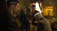 ランドリーは、ラムから母が、金曜日にコロラドスプリングスに来ると約束してくれた。ただしラムも一緒だ。金曜の夜にレストランを予約しておくとラムがいい、店はラムによって決められる。ランドリーにバッチのついた茶色のジャケットは着ちゃだめと念を押される。 ダニエルたちはSGCに戻ったが、自らヴァーラは決着をつけると、ジェイセクのアパートへ向かった。なぜ今頃ここにきて私の人生をかきまわそうとする、必要な時はいないで・・・(このあとヴァーラがいろいろな、暴言をします)あんたって何回言ったんだろう・・・ 言いたいだけ言って去ろうとするが信用を勝ち取るチャンスをくれとジェイセク。 メロナットの公益商から買ったというペンダント。二つ太陽のある星。 もう手遅れだろうが、謝りたいと・・・ 帰ろうとするが、ドアが開かない。ジェイセクは、ドアを開ける。 SGCに戻ったヴァーラにカーターが、見てほしいものがあるという。 ネットで見つけたものだ、それは星屑に秘められた神秘の力をと題して通販をしていたのだが、明らかに詐欺。(19ドル95セントで販売) ただちに、SGCに呼び寄せるミッチェル。本物の星屑じゃないさとジェイセクが言うと、そこが問題だとミッチェル。ただの金属の削りかすを売りつけている。 今度は目の色ダイエットという本で、売ろうと考えていた。 態度を改めないとこの星から出て行ってもらうと・・・ ティルクはジェイセクを連れて行く際、一つ忠告していいか?なにもするんじゃないと話す。 ヴァーラとダニエルは、ジェイセクの部屋を訪ねると留守だった、そこで、ヴァーラの鍵開けにより入室。監視用の発信機を取り外されていた。 ラムは健康診断時に発信機を埋め込んでいた。 その発信機の場所へと向かうダニエルたち。何かの交渉をしている。友達なんていたのか?とダニエルが疑いながら、「ジェイセク」と呼びかけると、突然振り向いてきた男は、ザットガンで反撃、ダニエルは交わし、ダニエルは射殺。 額にはジャファのマークが・・・ |